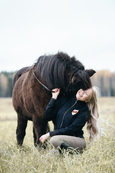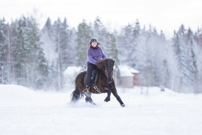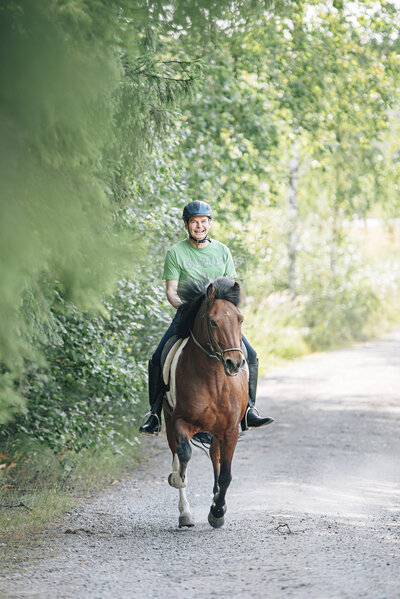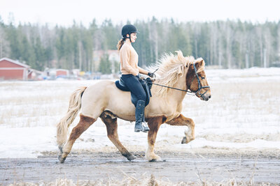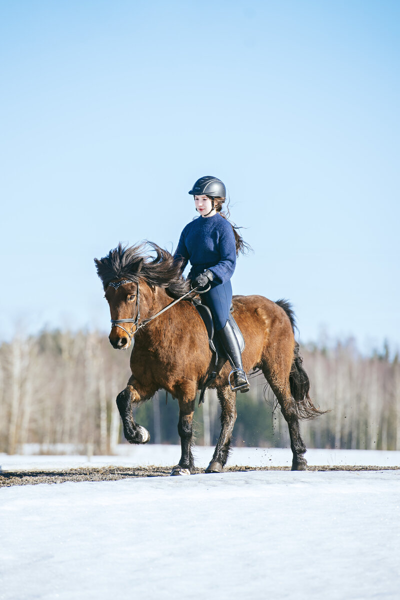 “Kun näin tämän upean valkean orin ensimmäistä kertaa islannissa, totesin tyynesti, että hän on mielestäni koko tallin komein ori, mutta olen varma, että inhoaisin ratsastaa sitä. Lisäksi olin kuullut, että kyseisestä hevosesta tulee tallin omistajan seuraava kilpuri, joten lisäsin, ettei meillä ikinä olisi siihen varaa vaikka se haluttaisiinkin. Pari viikkoa myöhemmin minut pistettiin treenaamaan tätä samaista hevosta ja muutaman kuukauden kuluttua Lombert oli omistuksessamme. En ole hetkeäkään inhonnut hänellä ratsastamista ja olen todella onnellinen, että omistamme tämän upean tyypin” -Heli.